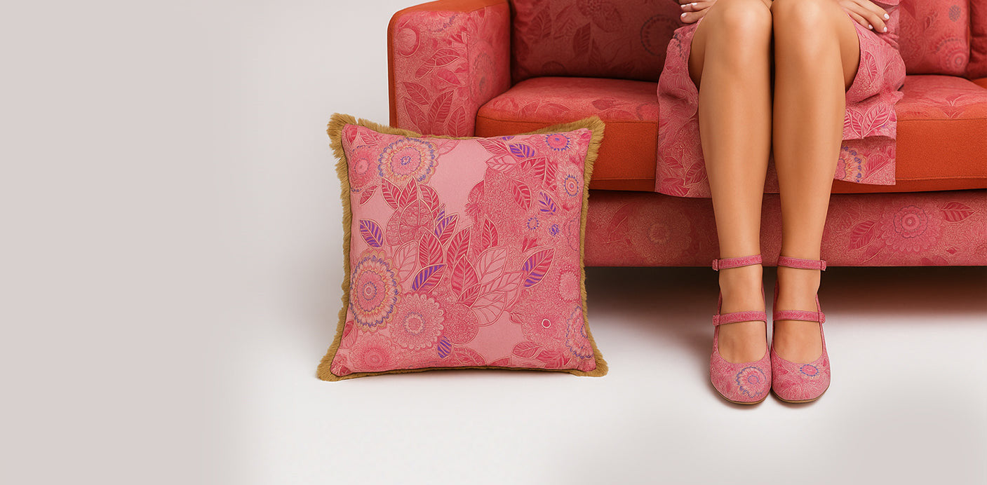 Almofada FJURI 45x45 Flores Rosas com Franja
