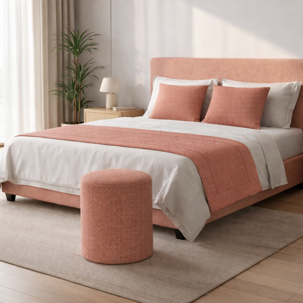 Os tecidos utilizados pela Kuxin são selecionados pela sua qualidade superior, resistência e conforto. Muitos deles são os mesmos aplicados em projetos de hotelaria e residências de elevado padrão, garantindo durabilidade sem comprometer a estética.